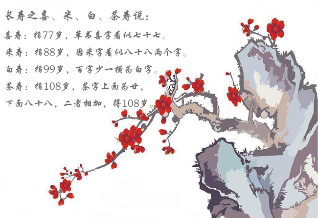 長(zhǎng)壽有喜、米、白、茶壽之說(shuō)