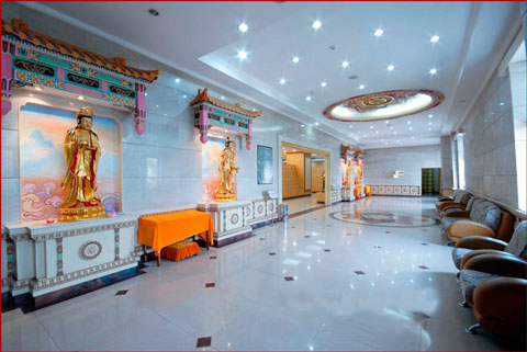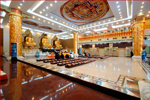 金寶塔共九層,通高52.6米,高聳入云,氣勢(shì)巍峨。取法于中國(guó)古代建筑之宏偉壯麗,塔剎的重檐琉璃瓦金碧輝煌,與藍(lán)天白云相映生輝,秉承“天人合一”的傳統(tǒng)文化,呈現(xiàn)“天宮勝殿”的建筑之美。