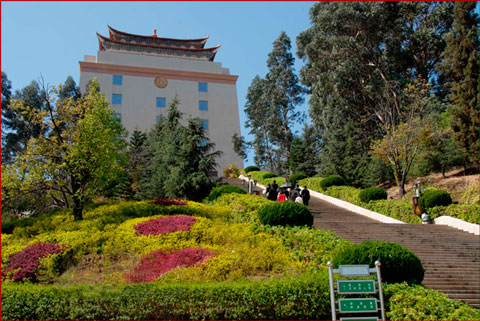 其地:得西山之蒼翠,擁滇池之浩渺,與天地感應(yīng),聚山水靈氣而得之。其勢(shì):插地而起,真入云霄,登上金寶塔極目遠(yuǎn)眺,盡攬五百里滇池,帆影鷗翔,美不勝收。