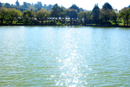 天然形成的放生池,池水充盈,宛如明鏡,簡直就是一個聚寶盆。池端的瀑布如銀色水簾飛流而下,與池水相襯,有動靜結合之妙,相得益彰。池中綠荷搖曳,蛙戲魚游,蜻蜓翻飛。湖邊的緩坡,是成片的桃樹和李樹,春季花開,桃花如彩云飄浮,李花如白霧迷離,在早晨的清風中,淡香襲人,宛然若畫。