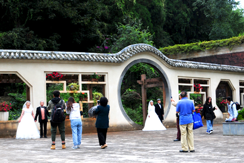 “五世同堂”主雕塑描繪的場景分別是:讀書、放牧、紡織、耕作、棋樂,10位人物合理分布,形態(tài)各異、栩栩如生。拄著龍頭拐杖的高祖奶奶是家中的第一代,這位百歲老壽星為家庭的和睦與豐裕深感喜悅,后輩的朗朗讀書聲對她來說是最優(yōu)美的聲音。手持煙袋正與重孫下棋的曾祖父是第二代,他寬容地看著重孫稚嫩的棋路,臉上充滿慈愛。懂事的重孫女正在為辛苦了一輩子的曾祖父錘腿。年事已高的曾祖母仍然不肯停止勞作,正在辛勤地紡紗,背上背著這個(gè)家庭的第五代,小寶寶在紡車的吱呀聲中安然入睡。承擔(dān)重體力勞動(dòng)的祖父是家中的第三代,他奮力驅(qū)趕著黃牛犁田,祖母在旁邊撒谷,他們正緊張地趕農(nóng)時(shí)搶種。在門廊下高聲誦讀文章的秀才是家中的第四代,他身上寄托著家族的希望。