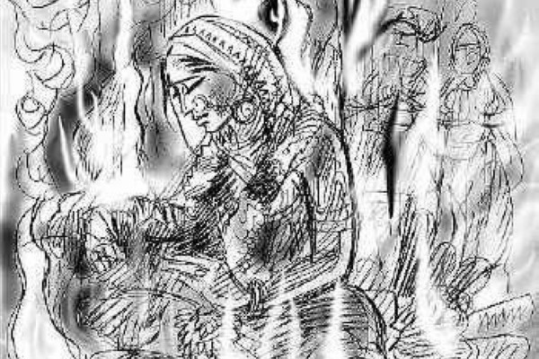 悲痛會使我們采取一些不尋常的發(fā)泄方式。殉夫,一個古老的印度教做法,殉夫者相信,女子這樣完成婚姻的忠誠后,將成為女神,她的神龕將被人們尊敬。在當今印度,這種做法已是非法的了,但仍偶有發(fā)生。