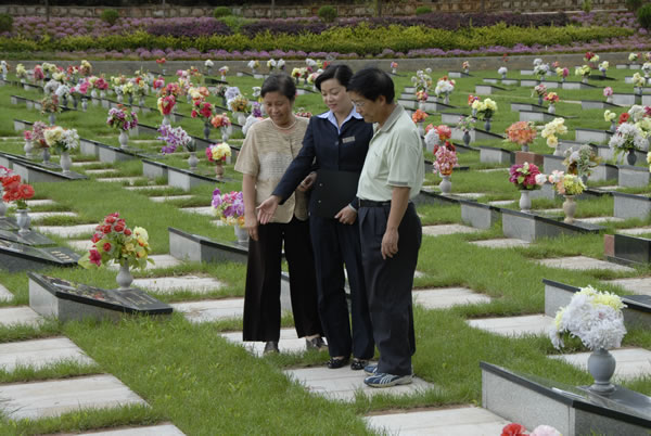 根據(jù)客戶(hù)的選購(gòu)意向,服務(wù)員工陪同到墓區(qū)成臺(tái)踏勘,并對(duì)該成臺(tái)墓位的情況進(jìn)行詳細(xì)介紹?蛻(hù)現(xiàn)場(chǎng)比較后,實(shí)地選擇滿(mǎn)意的位置。
