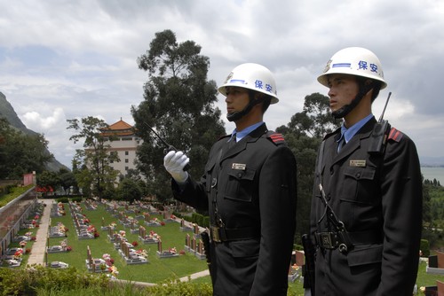 保衛(wèi)部 為了維護(hù)園區(qū)安寧,全部由退伍軍人組成的保衛(wèi)部,二十四小時(shí)承擔(dān)著安全保衛(wèi)任務(wù),無(wú)論是固定哨位還是巡邏查看,他們始終保持著警惕的目光。園區(qū)范圍廣大、樹(shù)林茂密,除了先進(jìn)的視頻設(shè)備,保衛(wèi)處還配備了機(jī)動(dòng)巡邏車(chē)輛,以技防和人防的合理組合,在安全和防火兩個(gè)方面,確保了生命公園的平安祥和。