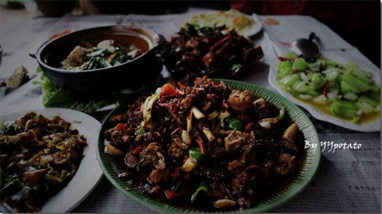 餐館很多,撿一家人氣旺的進(jìn)去,窗臺曬的紅辣椒,重口味!