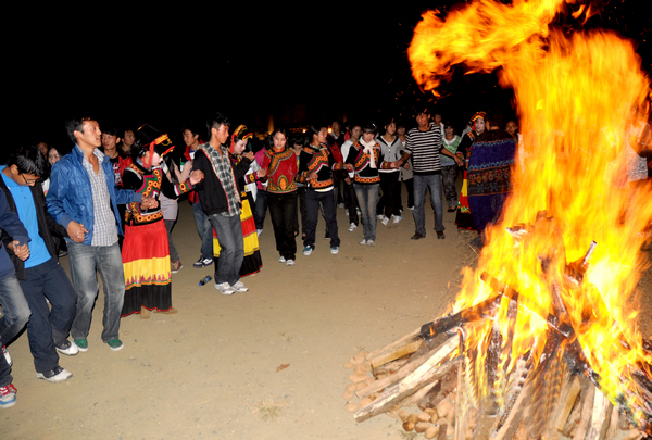 彝族最重大的節(jié)日是六月廿四日的“火把節(jié)”。節(jié)日的晚上,荷花飄著清香,當(dāng)?shù)厝伺e著火把圍在一起載歌載舞,把節(jié)日氣氛推向高潮。節(jié)間有豐富多彩的斗雞、斗牛、斗馬、摔跤等極富民族特色的節(jié)目。游人平時也可以邀請村子里的幾支文藝隊(duì)進(jìn)行篝火晚會大聯(lián)歡。