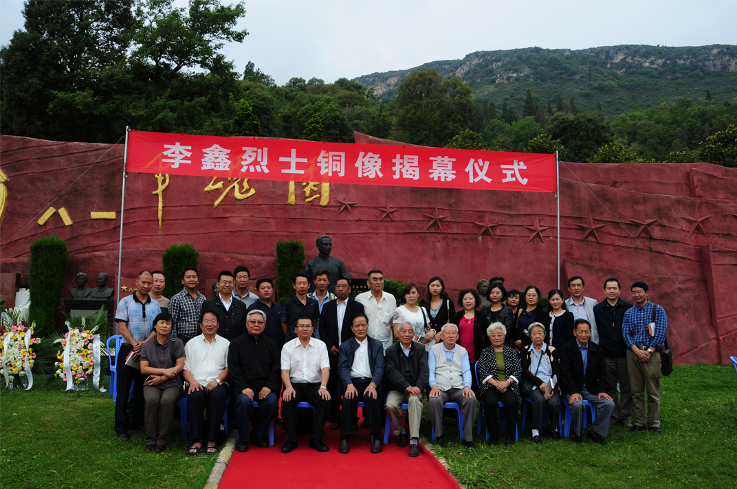 2014年6月18日,天氣晴朗,上午9:30,李鑫烈士銅像揭幕儀式在金寶山軍名人苑開始,F(xiàn)場(chǎng)氣氛肅穆,面向覆蓋著紅綢的李鑫烈士銅像,來賓們?nèi)耸忠恢S菊,年齡較長(zhǎng)者坐于前排,其余人員均按序站立于后。在莊嚴(yán)肅穆的國(guó)際歌樂曲聲中,金寶山禮儀隊(duì)向李鑫烈士銅像敬獻(xiàn)了花籃,省統(tǒng)戰(zhàn)部副部長(zhǎng)童鳳華攜省人大、僑辦、僑聯(lián)四位領(lǐng)導(dǎo)共同為銅像揭幕,龍陵縣委書記趙國(guó)良及縣志辦主任為李鑫烈士生平墓碑揭幕。揭幕后,童鳳華副部長(zhǎng)、趙國(guó)良書記發(fā)表了講話。之后來賓們依序向銅像敬獻(xiàn)了鮮花,并紛紛合影留念。整個(gè)揭幕儀式簡(jiǎn)潔、莊重,充滿了對(duì)烈士的懷念與敬仰之情。儀式由原省僑聯(lián)結(jié)巡視員李巨濤主持,他代表緬甸著名工商界人士、著名僑領(lǐng)、滇籍華商、李鑫烈士的孫子李先瑾先生,向今天出席李鑫烈士銅像及生平碑揭幕儀式的各位領(lǐng)導(dǎo)、嘉賓和親朋好友表示衷心的謝意!