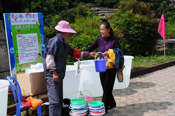 與一般的墓園不同,金寶山主打生命公園,金寶山里山林蔥郁,杜鵑紅艷,柳絲吐絮,數(shù)千只七彩的風(fēng)車插在風(fēng)景秀麗的園區(qū)道路兩旁,給公園添上了絢麗的動(dòng)感;古人謂清明“萬物生長(zhǎng)時(shí),皆清潔而明凈,故謂之清明。”為讓人們?cè)谇迕鳚崈舻沫h(huán)境中祭拜親人,金寶山特意準(zhǔn)備了數(shù)萬小水桶和小毛巾在十多個(gè)點(diǎn)擺放,為客戶擦拭墓碑提供了直接的便利;還有民族歌舞優(yōu)雅的獻(xiàn)唱和舞姿,精心編輯的中國(guó)古代百俗圖文鑒賞,以及贈(zèng)送給客戶的精美禮品……這些,都傳達(dá)出充滿陽(yáng)光與活力的生命公園的與眾不同之處,使客戶體驗(yàn)過節(jié)的心情,打造綠色、清潔、美好環(huán)境,度過溫情、美好的節(jié)日。因?yàn)檫@里園林化的公園環(huán)境和個(gè)性化的貼心服務(wù),客戶的反映很好。市民王先生說:“園區(qū)里清潔安靜,環(huán)境清幽,路旁還插著七彩的風(fēng)車,陽(yáng)光、溫馨,這是我第一次看到環(huán)境這么好的墓園,就像置身于公園之中,最主要的是小水桶和毛巾免費(fèi)提供讓我們清潔墓碑更加方便。”他認(rèn)為這是清明節(jié)重要的戶外形式,對(duì)綠色生活、文明祭掃具有比較積極的作用,為城市的文明作出了貢獻(xiàn)。