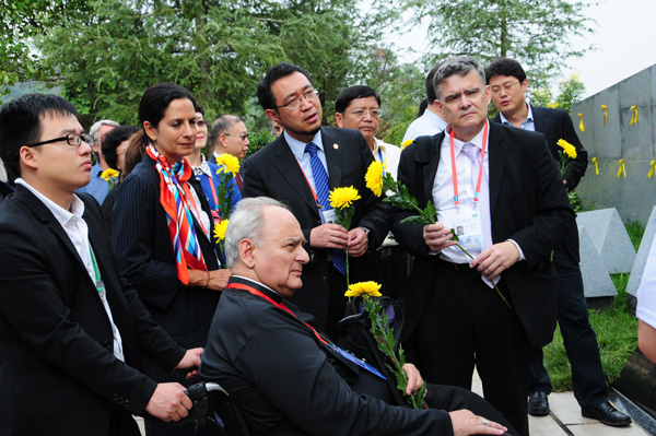 8月4日下午,金寶山藝術(shù)園林迎來了一批尊貴的客人,梵蒂岡教皇科學(xué)院院長馬塞洛·S·索龍多,世界衛(wèi)生組織器官移植主管官員何塞·努涅斯,教皇科學(xué)院院士、國際器官移植協(xié)會前任主席、世界衛(wèi)生組織器官移植顧問弗朗西斯·德爾莫尼克,國際器官移植協(xié)會現(xiàn)任主席南茜·阿舍等國際器官移植界的頂級權(quán)威專家。風(fēng)塵仆仆的專家們特地來到這里,是為了向人體器官捐獻(xiàn)者敬獻(xiàn)鮮花、表達(dá)敬意。