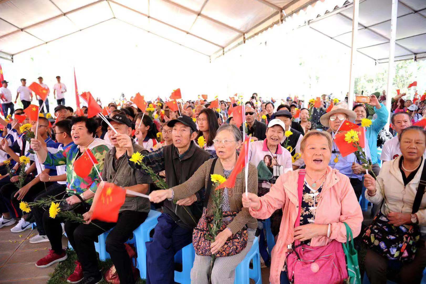 在忠魂園入口的石階上,89歲的王希維老爺爺停下休息片刻。在老伴的陪伴下又步行到活動區(qū)等候參加此次主題紀念活動。“金寶山今年做的這個活動非常好,這些歌曲唱起來感覺非常親切,我們很感動,我都流淚了。當年,我跟隨陳賡將軍部隊從江西來到云南,一直在軍隊機關(guān)工作,因為沒有在前方?jīng)_鋒,所以沒有為國家做出更多貢獻,我感覺很慚愧。但是我們黨、國家、領(lǐng)導(dǎo)以人民為中心,一直對我們老一代很關(guān)心、很愛護。參加此次活動,也讓我回憶和感受到了當年那種信心百倍、斗志昂揚,抱著為祖國而獻身的堅強決心和堅定信念。”說完,王希維爺爺輕輕擦拭了一下眼角的淚水,他認為此次活動既傳承紅色革命精神,弘揚時代主旋律,又能教育后代切實擔負起時代賦予的使命。