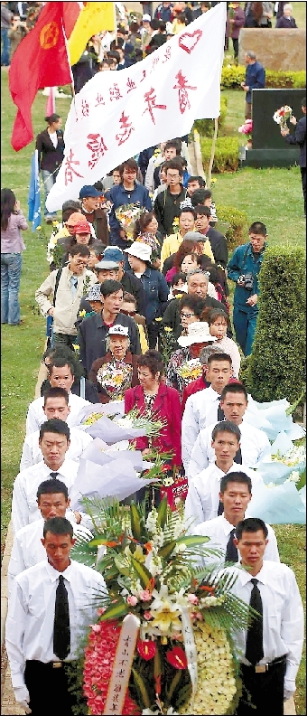 昨日,在陣陣柔美的音樂聲中,青年學(xué)生、革命先輩家屬等逾千人聚集在金寶山軍魂園,舉行“紀(jì)念為祖國、為云南作出貢獻(xiàn)的人們”主題紀(jì)念活動(dòng),青年學(xué)生帶來的文藝表演將活動(dòng)推向了高潮;顒(dòng)中,省教育廳授予金寶山為首批“三生教育實(shí)踐基地”。據(jù)了解,這是“三生教育”借助社會資源搭建實(shí)踐平臺的初次嘗試。