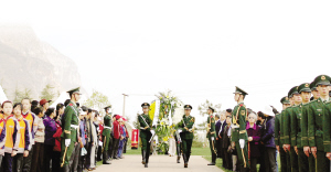 3月31日早上10點(diǎn)半左右,邊防官兵代表、共青團(tuán)代表、諾仕達(dá)集團(tuán)代表、少先隊(duì)員代表、云南26個(gè)民族代表紛紛向“忠誠(chéng)衛(wèi)士紀(jì)念碑”敬獻(xiàn)花圈。
