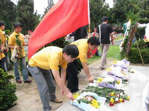 一名東航團員說:“我想要為每一位先烈送上美麗的鮮花,了解他們的豐功偉績,并繼承和發(fā)揚他們?yōu)槿嗣穹⻊?wù)的精神。”