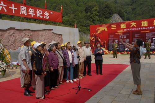 原邊縱司令部老戰(zhàn)士龍鼎生更是萬分感慨:在建國(guó)六十周年來臨之際,我們十分緬懷那些為了共和國(guó)的開創(chuàng)英勇獻(xiàn)身的先烈,是他們用自己的青春和熱血,換來了新中國(guó)的誕生,數(shù)百老兵這番聚會(huì),正是為了回顧云嶺高原那段風(fēng)云激蕩的革命歲月,回顧那些披荊斬棘的革命先輩。