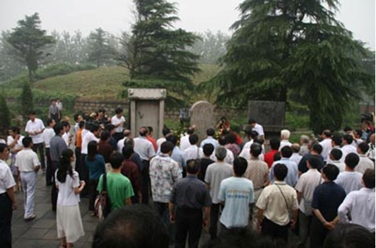 荀子墓位于臨沂市蒼山縣蘭陵鎮(zhèn)東南約一公里處,蒼山縣位于蘇魯交界處、沂蒙山區(qū)南緣,素有“中國大蒜之鄉(xiāng)”、“中國民間藝術之鄉(xiāng)”之美譽。過去,我只知道荀子葬在蘭陵,但很少把蘭陵與臨沂與蒼山聯(lián)系起來。蘭陵給我留下美好的印象,更主要是有唐朝大詩人李白在《客中行》中所描述的:“蘭陵美酒郁金香,玉碗盛來琥珀光。但使主人能醉客,不知何處是他鄉(xiāng)。”我們到達荀子墓時,沒想到縣里、鄉(xiāng)鎮(zhèn)的十余位同志已經(jīng)等在那里。下車寒暄后,頂著烈日,大家一邊擦著汗,一邊聽女講解員在介紹荀子以及荀子墓的情況。也許是由于緊張的緣故,也許是平時來這里的人太少的緣故,這位女講解員的知識儲備顯然不足,介紹起來磕磕絆絆。我寬慰她說,沒關系,別緊張,她便越發(fā)緊張了。后來我才知道,我來的時候,馮君已向基層同志介紹說,我是研究荀子的專家。專家實在是不敢當,但當我聽完介紹后,我還是把荀子與孔孟思想的關系,荀子與中國傳統(tǒng)文化的關系簡略地向周圍的人做了介紹,這時,我自己儼然成了一名解說員。天接近中午,陽光依然灼熱,四周的莊稼無力地耷拉著葉子,顯得疲憊而無奈。我提出隨便走走看看,順便照些照片。當我環(huán)顧荀子墓四周,再想想近在咫尺的曲阜“三孔”,感覺歷史似乎太不公平,同為一代思想大家,身后境遇竟如此不同。荀子墓周圍田野空曠,花草瘋長,顯然平時很少打理,荀子默默地躺在那里,荒涼、寂寞、孤單。